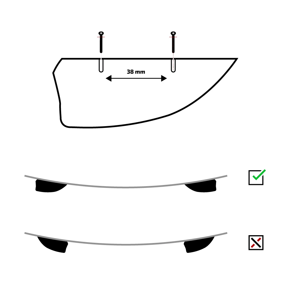 – Distance entre les deux pas de vis (centre à centre) : 38 mm
